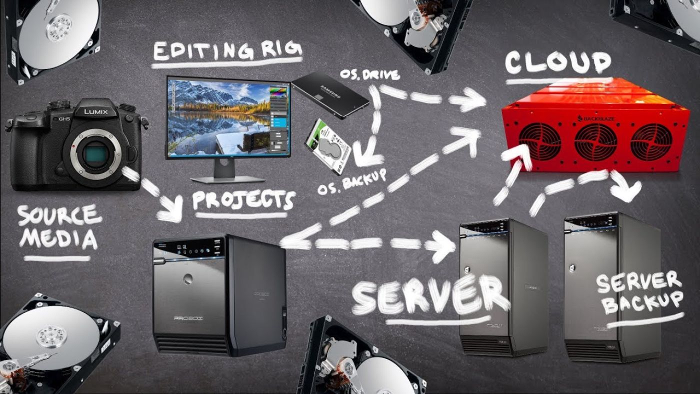 Jag skaffade tre externa mekaniska hårddiskar, en 3,5-tumsdisk på 8 TB som sitter i ett kabinett på skrivbordet, och två 2,5-tumsdiskar på vardera 2 TB som är lätta att ta med sig. 8 TB-disken är ”slutförvaring” av allt som jag vill säkerhetskopiera, både från datorn och från minneskort. De två mindre diskarna använder jag som ”aktiv lagring”, dvs det är dem jag plockar fram när jag ska leta upp original till en kund eller ta in ett tidigare projekt för vidare bearbetning. En av diskarna för foto (FOTO1), både original bearbetade, och en för videoprojekt (VIDEO1).